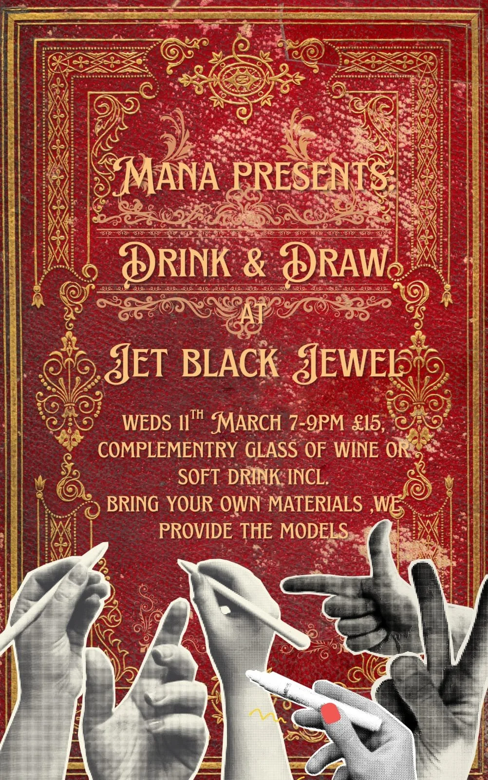 Get your creative juices flowing at our Drink & Draw evening presented by Mana Hub Whitby and hosted by Jet Black Jewel